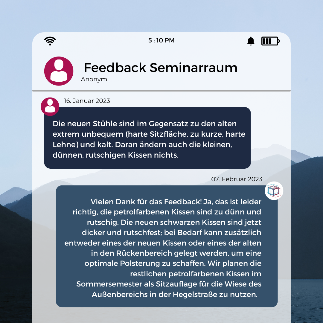 Chairs and cushions in the seminar room: done