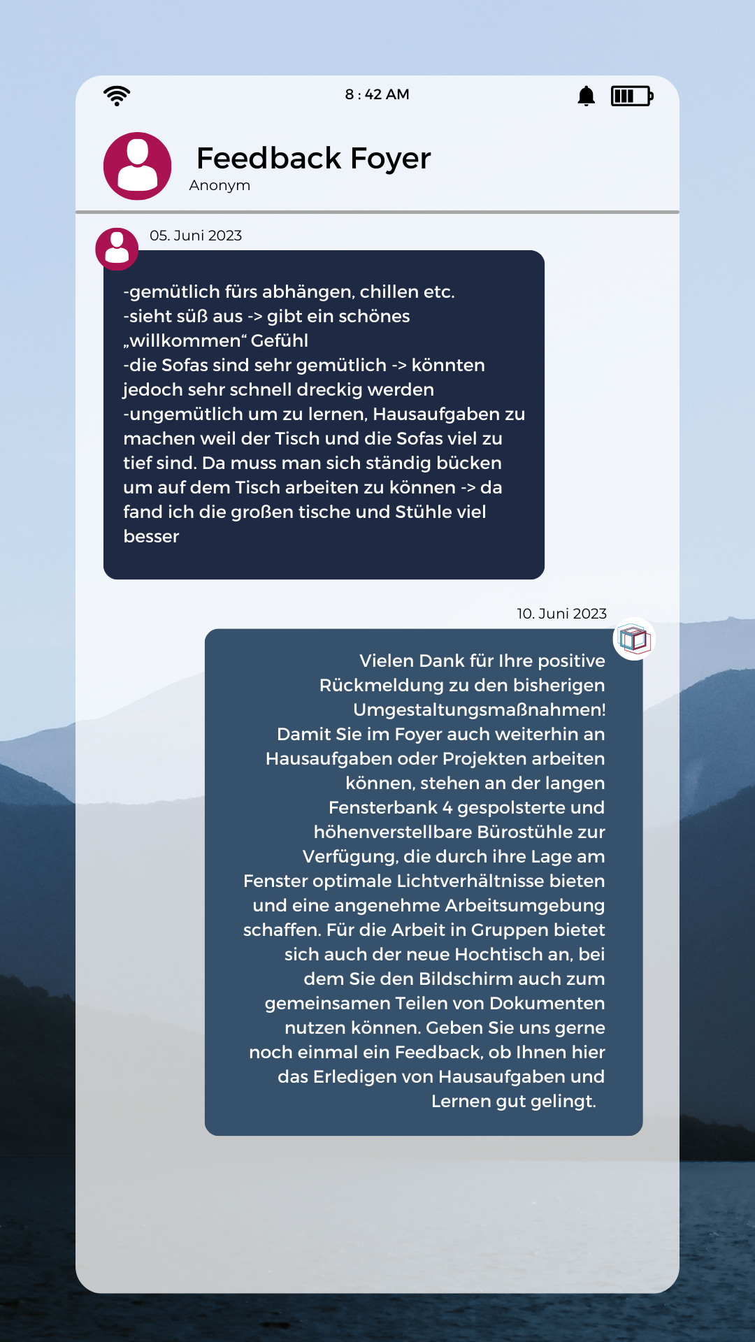 Collected feedback on the foyer: done